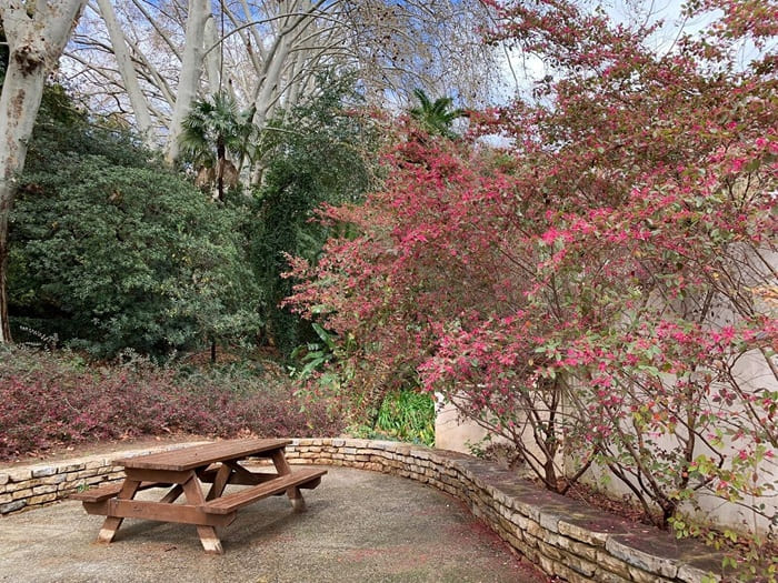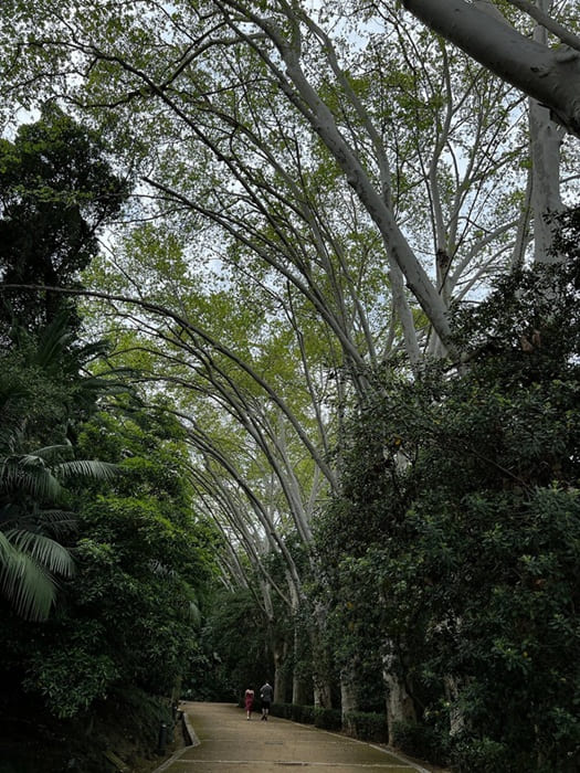 Entre ellos destacan el Ficus macrophylla, el Taxodium distichum (ciprés de los pantanos) y el Araucaria bidwillii, procedente de Australia, el Ginkgo biloba, todos ellos son símbolos de longevidad y resistencia.. Estas especies crean una atmósfera mágica, perfecta para desconectar del bullicio urbano.