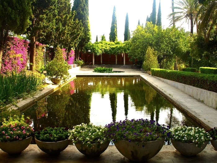Un recorrido romántico donde el sonido del agua acompaña cada paso. Los estanques están rodeados de nenúfares, papiros y pequeños puentes de piedra. Sigue el curso de antiguas acequias y fuentes, símbolo del equilibrio entre la naturaleza y la ingeniería humana